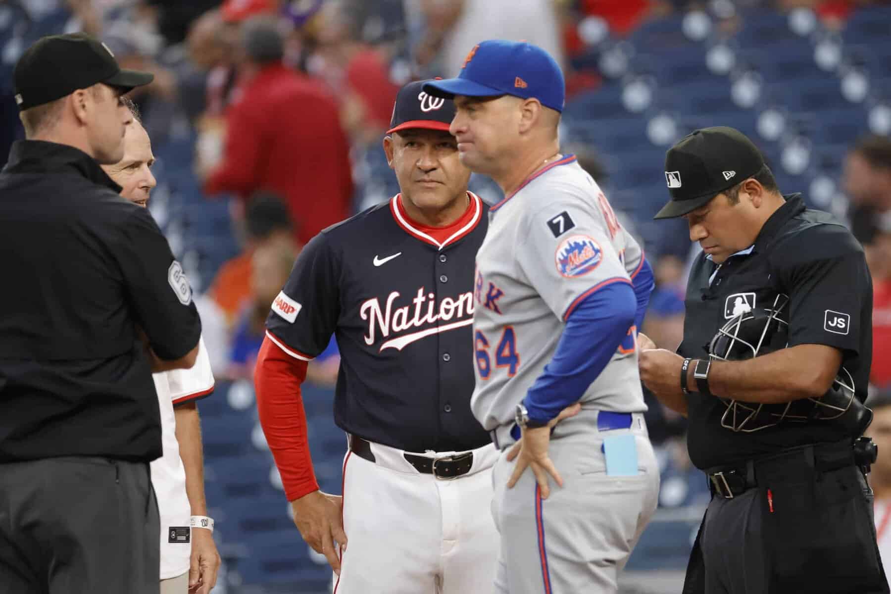 It was Tuesday night, and something special was brewing in “The Nation’s Capital.” It was not just another routine lineup card exchange, but a moment that would etch itself into baseball’s history books. When New York Mets Manager Carlos Mendoza stepped up to home plate to meet Washington Nationals Miguel Cairo, they were making history as the first Venezuelan-born skippers to face off in a Major League game.