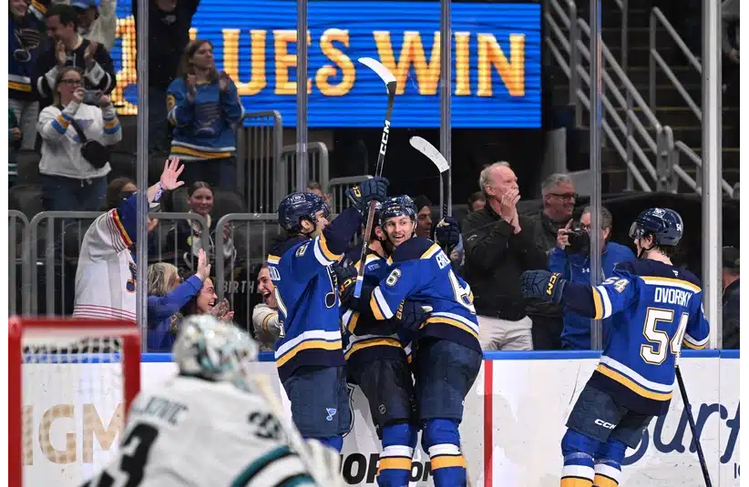 The Blues needed nearly 65 minutes to put the Sharks away, but the way they closed the night said everything. Dylan Holloway’s backhand winner at 4:57 of overtime capped off a game defined by patience, defensive commitment, and timely execution. It wasn’t a blowout. It wasn’t a track meet. It was a game where every inch mattered, and the Blues refused to blink.