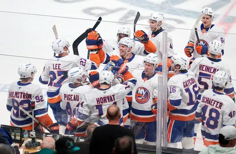 In the third period, Cal Ritchie scored for the Islanders to make it 3-2. He scored right after he was high-sticked, drawing a four-minute penalty. That was an own goal. Then Horvat scored for the Islanders to tie the game to tie the game at 3-3. That was his 28th goal of the season, tying his total from last season.
